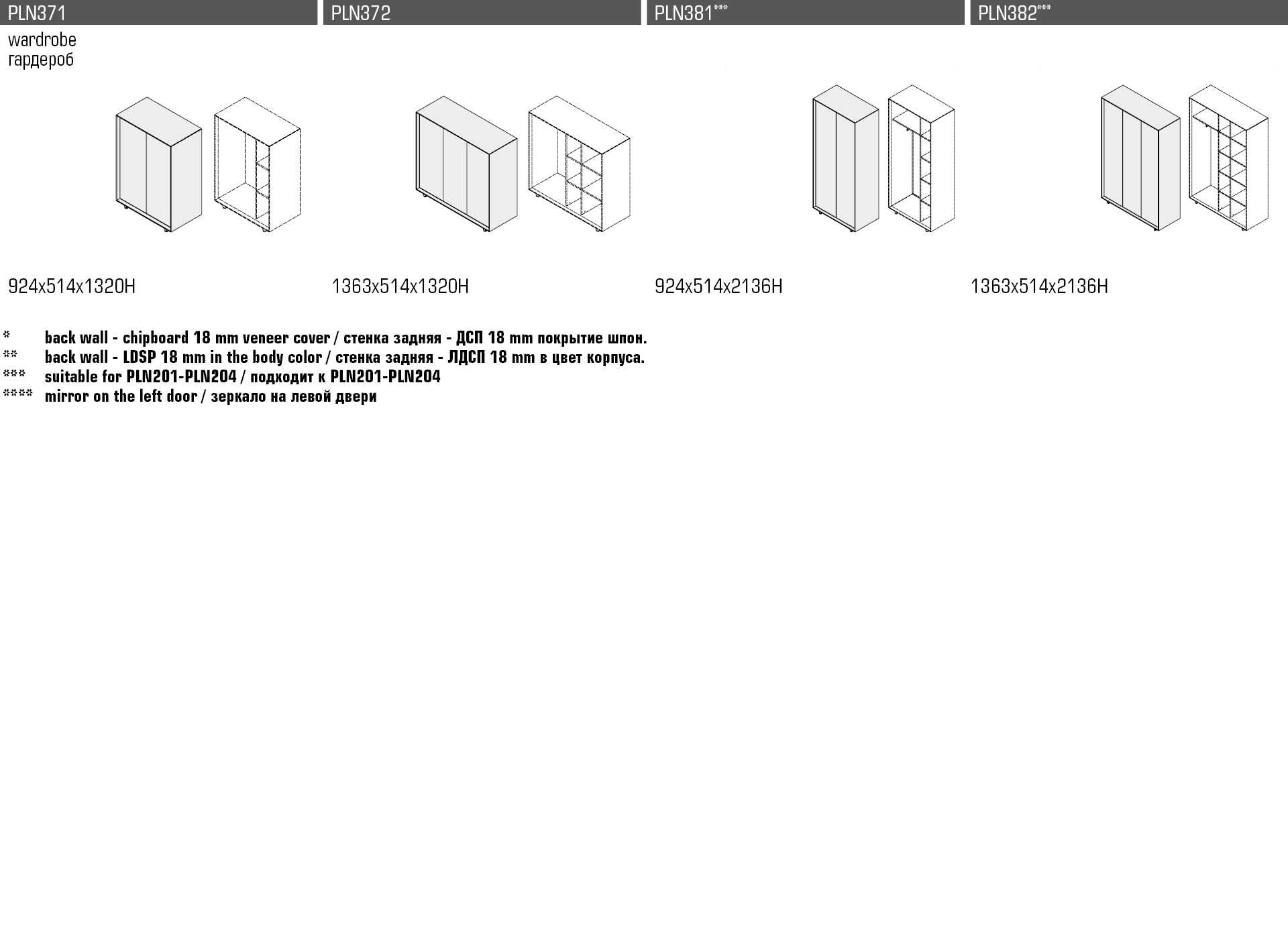 Фасады, стенка задняя – ДСП толщиной 18 мм, облицованная шпоном, цвет – Smoked Oak, покрытие – лак G03/матовый.