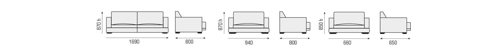Габаритные размеры: 1690 (д) х 800 (г) х 870 (в).